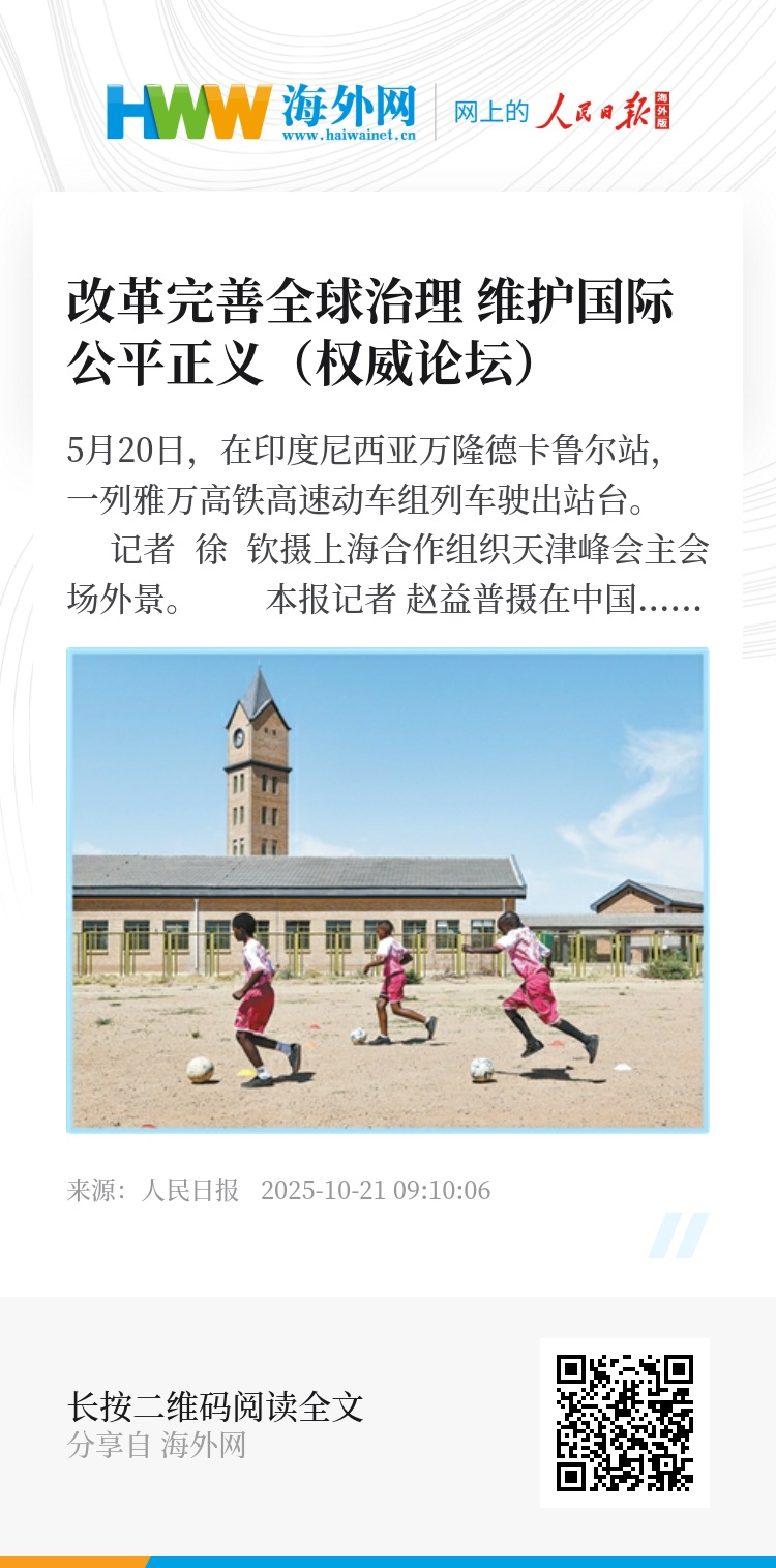 王帆:习近平主席提出共商共建共享的全球治理观,主张世界命运由各国共同掌握,国际规则由各国共同书写,全球事务由各国共同治理,发展成果由各国共同分享,推动各国权利平等、机会平等、规则平等,为全球治理体系变革阐明基本原则、指明前进方向。今年,在中国人民抗日战争暨世界反法西斯战争胜利80周年和联合国成立80周年的重要历史节点,习近平主席提出全球治理倡议,是对当前全球治理体系面临的挑战的有力回应。这一重大倡议引发热烈反响,140多个国家和国际组织迅速表示欢迎支持。