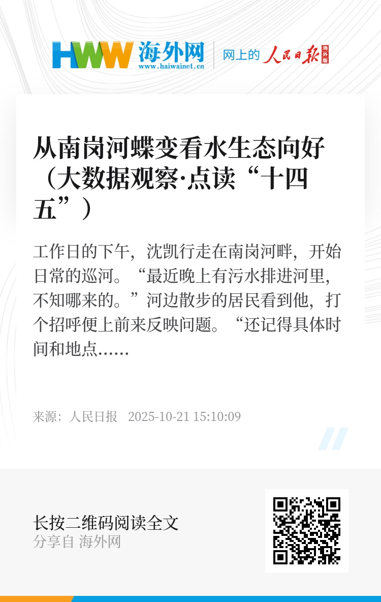 经过全流域精心打造,南岗河成为繁华的绿色长廊,实现了人水和谐、水城融合发展,2024年入选水利部“幸福河湖”优秀案例。南岗河的重生,映照出我国3000多条幸福河湖的建设成效,更是“十四五”以来我国水生态环境质量持续向好的生动体现。