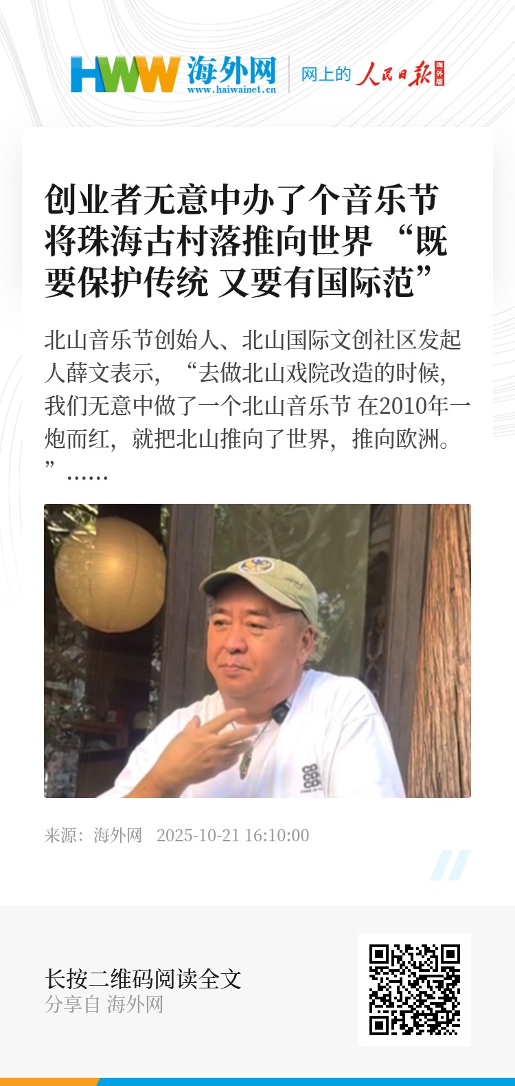 北山音乐节创始人、北山国际文创社区发起人薛文表示,“去做北山戏院改造的时候,我们无意中做了一个北山音乐节,在2010年一炮而红,就把北山推向了世界,推向欧洲。”