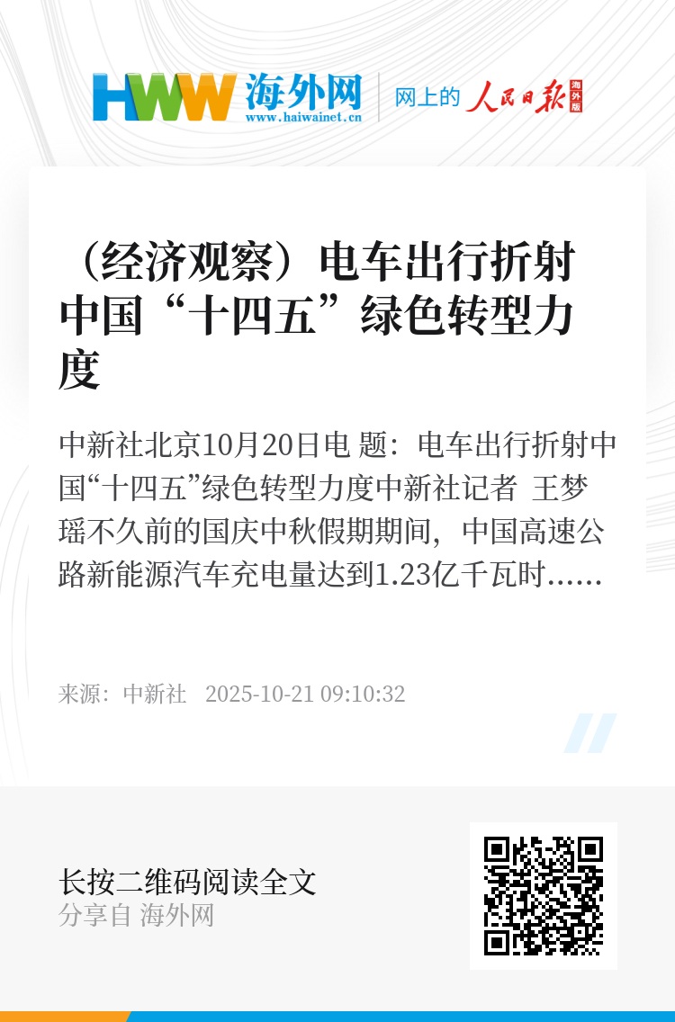 中新社北京10月20日电 题:电车出行折射中国“十四五”绿色转型力度