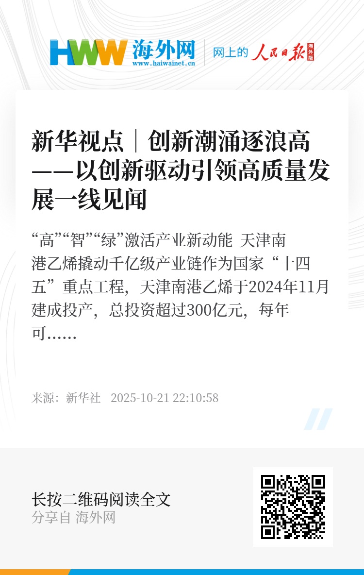 “高”“智”“绿”激活产业新动能 天津南港乙烯撬动千亿级产业链
