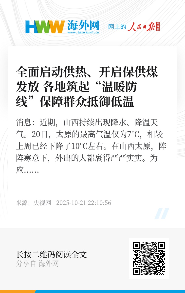 在山西太原,阵阵寒意下,外出的人都裹得严严实实。为应对降温,太原全面启动供热,较原计划提前13天。在太原市集中供热调度中心,大屏幕上显示着各供热系统的实时画面和各项数据指标,依托智慧供热系统,工作人员可以动态调节相关供热参数。