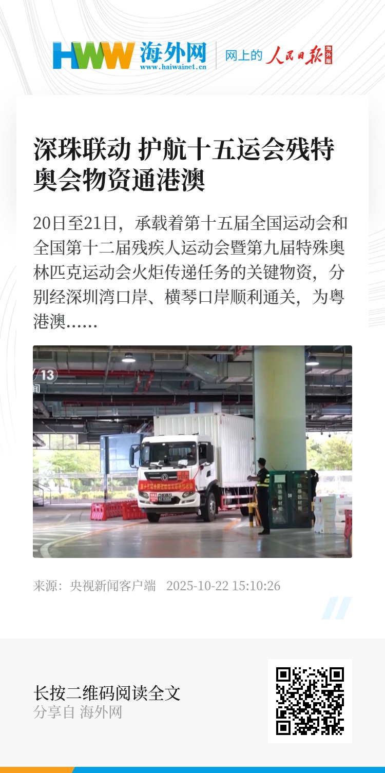 20日至21日,承载着第十五届全国运动会和全国第十二届残疾人运动会暨第九届特殊奥林匹克运动会火炬传递任务的关键物资,分别经深圳湾口岸、横琴口岸顺利通关,为粤港澳三地的火炬传递活动提供保障。