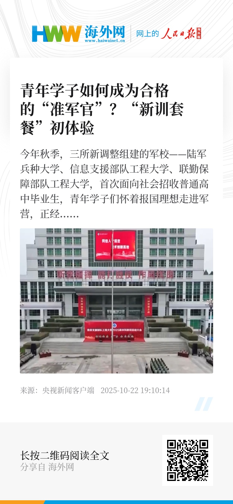 今年秋季,三所新调整组建的军校——陆军兵种大学、信息支援部队工程大学、联勤保障部队工程大学,首次面向社会招收普通高中毕业生,青年学子们怀着报国理想走进军营,正经历着一场身体与意志的双重淬炼。