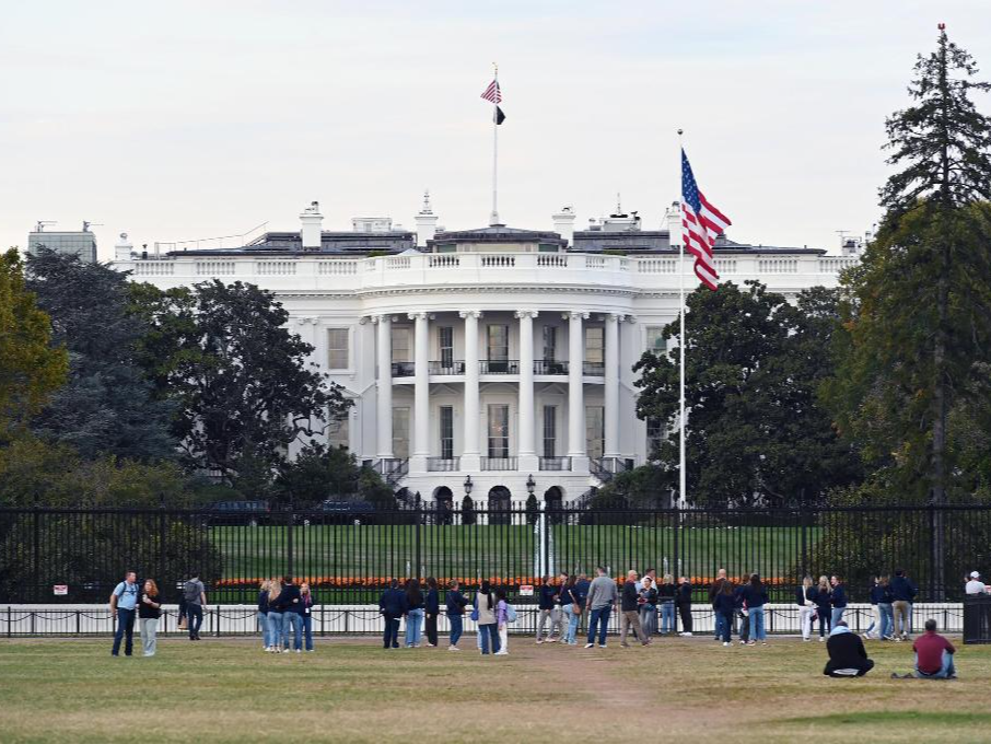 10月21日,在美国华盛顿,人们在白宫前休闲。新华社记者李睿摄