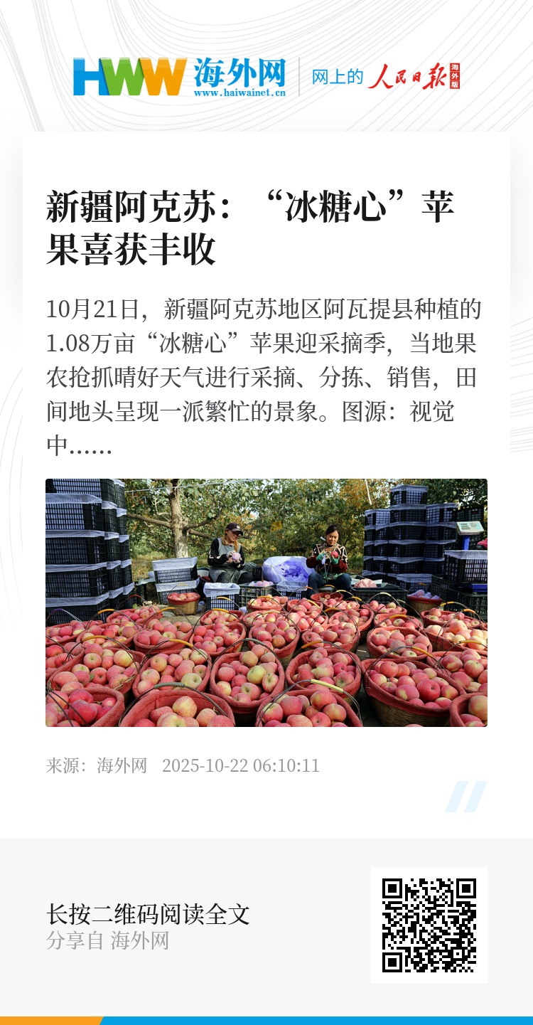 32902736,.新疆阿克苏:“冰糖心”苹果喜获丰收,.2025-10-22 06:51:11,.204441,.张荣耀、姚凯红