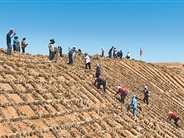 宁夏中卫市,当地治沙人员正用麦草方格固沙。