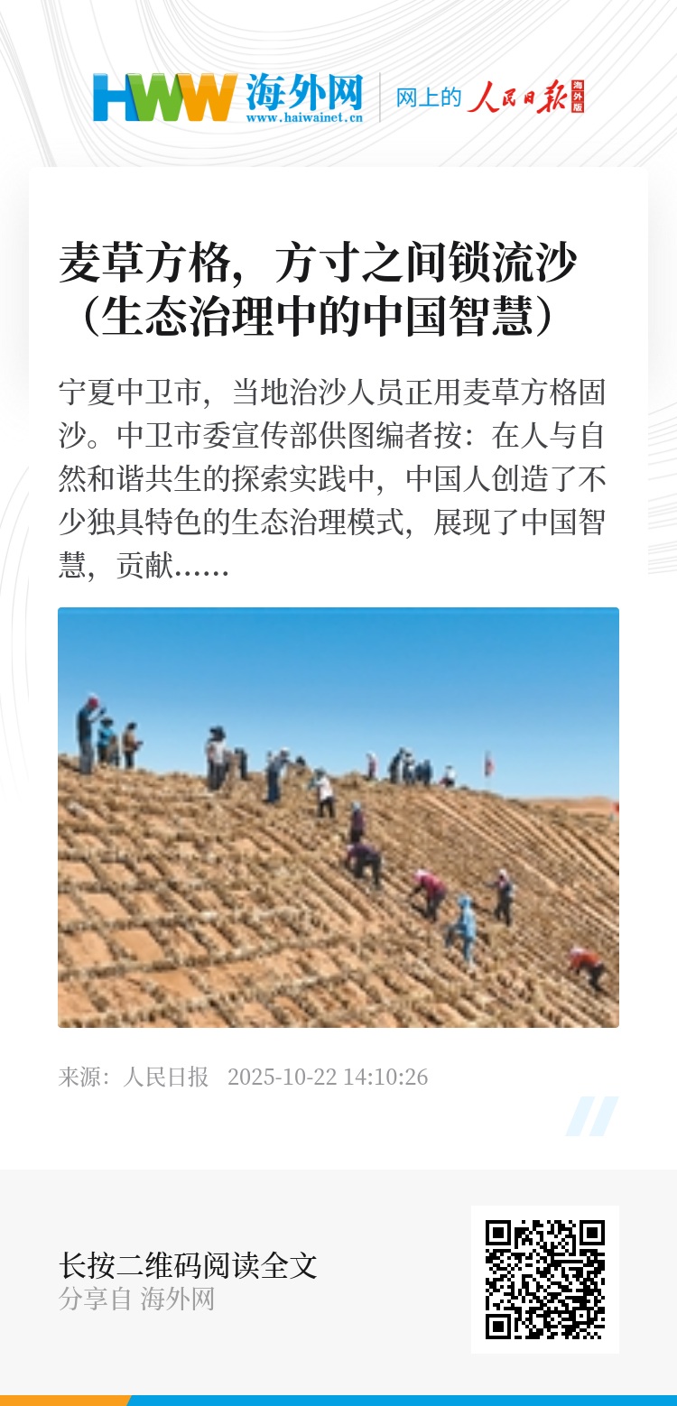 “锁边”,靠的便是“麦草方格”——中国独创的治沙固沙方案。这方寸之间的巧思,稳得住沙、锁得住水、挡得住风,守护包兰铁路安全通车,更筑起西北地区防风固沙的生态屏障。