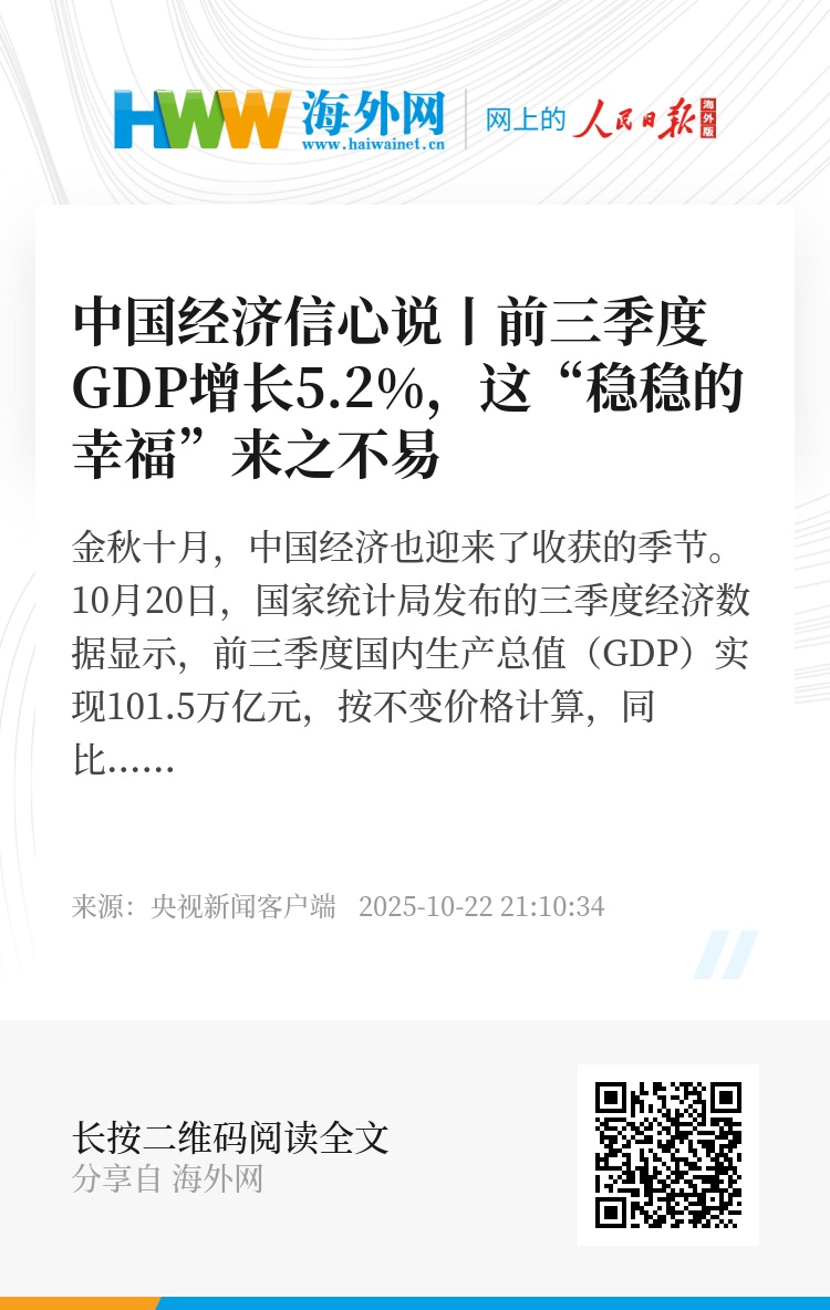 别小看了“5.2%”的含金量。在各种风险挑战交织的背景下,我国这样超大体量的经济体,能守住这份“稳稳的幸福”,确实不简单。