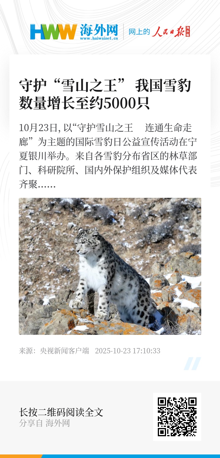 过去十年间,我国雪豹保护取得显著成效。监测数据显示,全国雪豹种群数量从2013年的约2500只增长至约5000只,栖息地面积扩大至208万平方千米。目前已建成2个国家公园和78处重要栖息地,总面积超过83万平方千米,近40%的潜在栖息地得到有效保护。