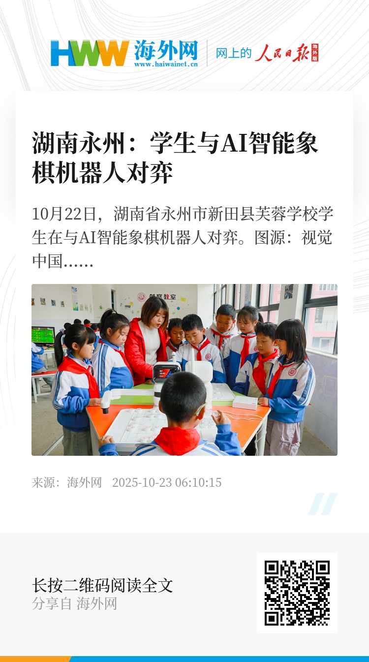 32903018,.湖南永州:学生与AI智能象棋机器人对弈,.2025-10-23 06:48:15,.204441,.张荣耀、姚凯红