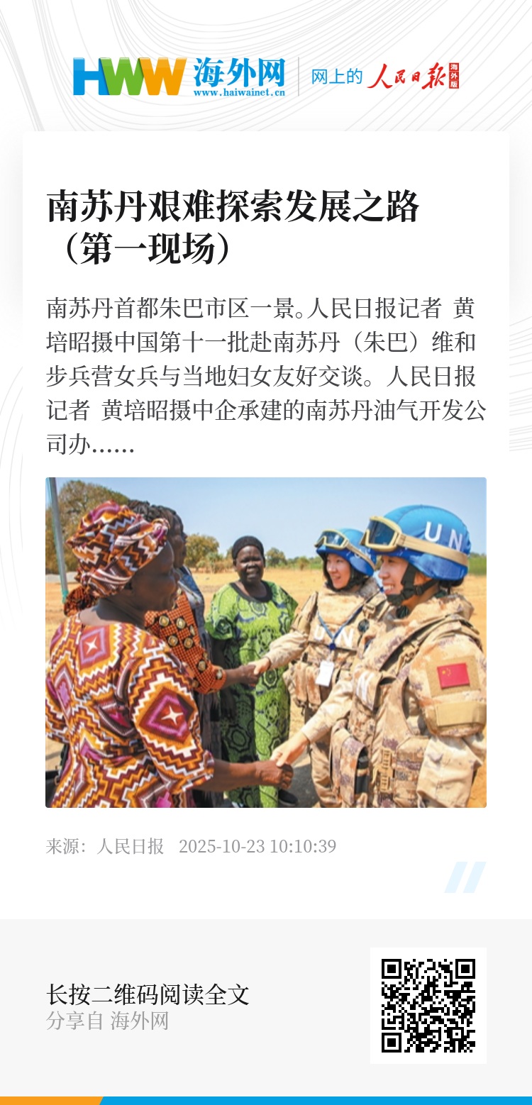 记者看到,在这一长期动荡的危险地带,中国赴南苏丹(朱巴)维和步兵营官兵日夜坚守,构筑起一道守护平民安全与区域稳定的生命屏障。在救死扶伤的第一线,中国医疗队“白衣天使”们在日常诊疗中缓解当地民众病痛,更致力于提升南苏丹的医疗卫生水平。不少当地民众对记者感慨道,他们深切感受到中国军人与医护人员的真诚友好,不会忘记中国朋友的无私帮助。