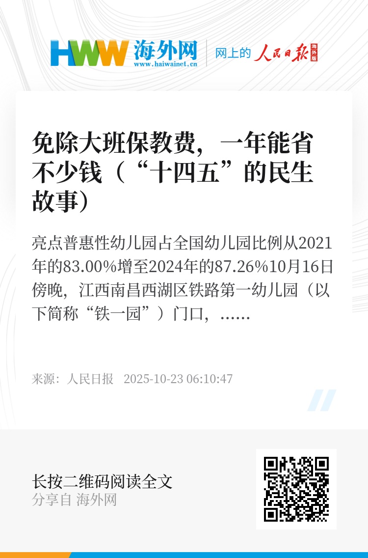 今年,舒宇轩升了大班。“上中班时每月还交600元,这学期全免,又省了3000元。”黎冰子说,“省下的钱能给两个孩子买绘本、报兴趣班。”