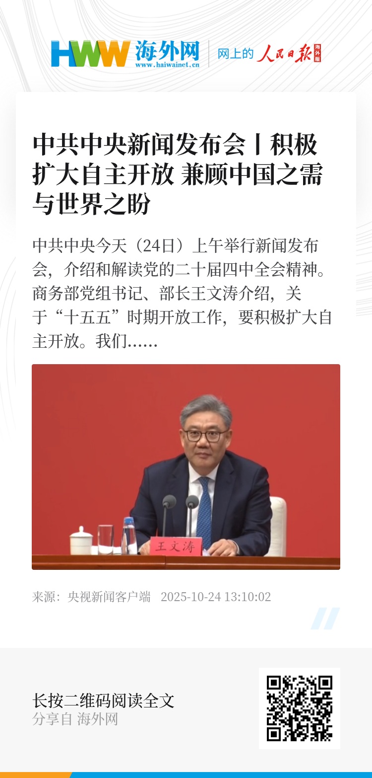 商务部党组书记、部长王文涛介绍,关于“十五五”时期开放工作,要积极扩大自主开放。我们的开放兼顾中国之需与世界之盼,要主动对接国际高标准经贸规则,以服务业为重点,扩大市场准入和开放领域。围绕扩大经贸“朋友圈”,加快推进区域和双边贸易投资协定进程,扩大高标准自贸区网络。聚焦打造开放高地,搞好各类开放试点试验。