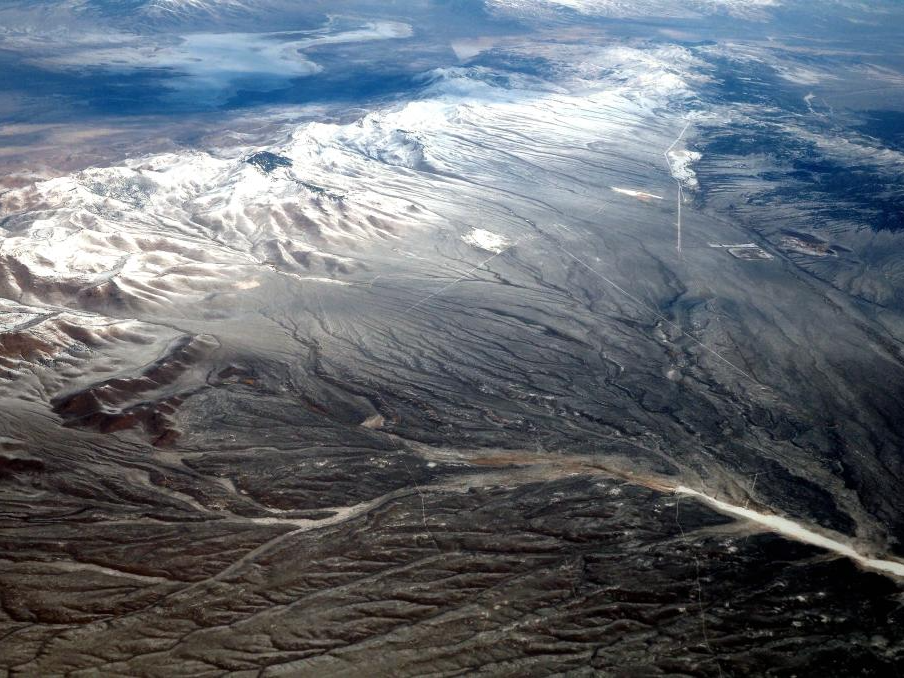 这是2020年1月18日在美国阿拉斯加航空1022航班上拍摄的被白雪覆盖的山地。新华社记者吴晓凌摄