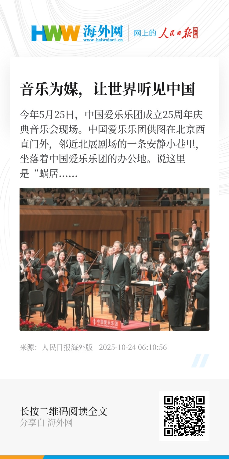 今年是中国爱乐乐团成立25周年。这支创建于世纪之交的乐团,承载着“中国一流,亚洲前列,世界著名”的使命,不仅成为中国音乐艺术的标杆,更以音乐为桥,扮演着连接中国与世界的重要文化使者角色。乐团党委书记张晨晓将这25年的历程,归结为国家文化发展的必然与一代代卓越音乐人事业心的坚守。