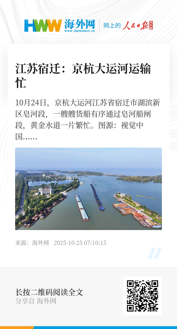 32903525,.江苏宿迁:京杭大运河运输忙,.2025-10-25 07:52:15,.204555,.陈菲扬、卢思宇