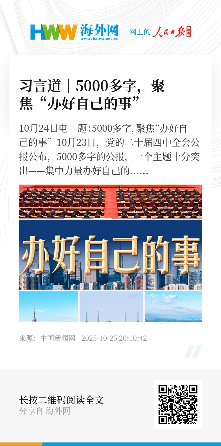 中新网10月24日电 题:5000多字,聚焦“办好自己的事”