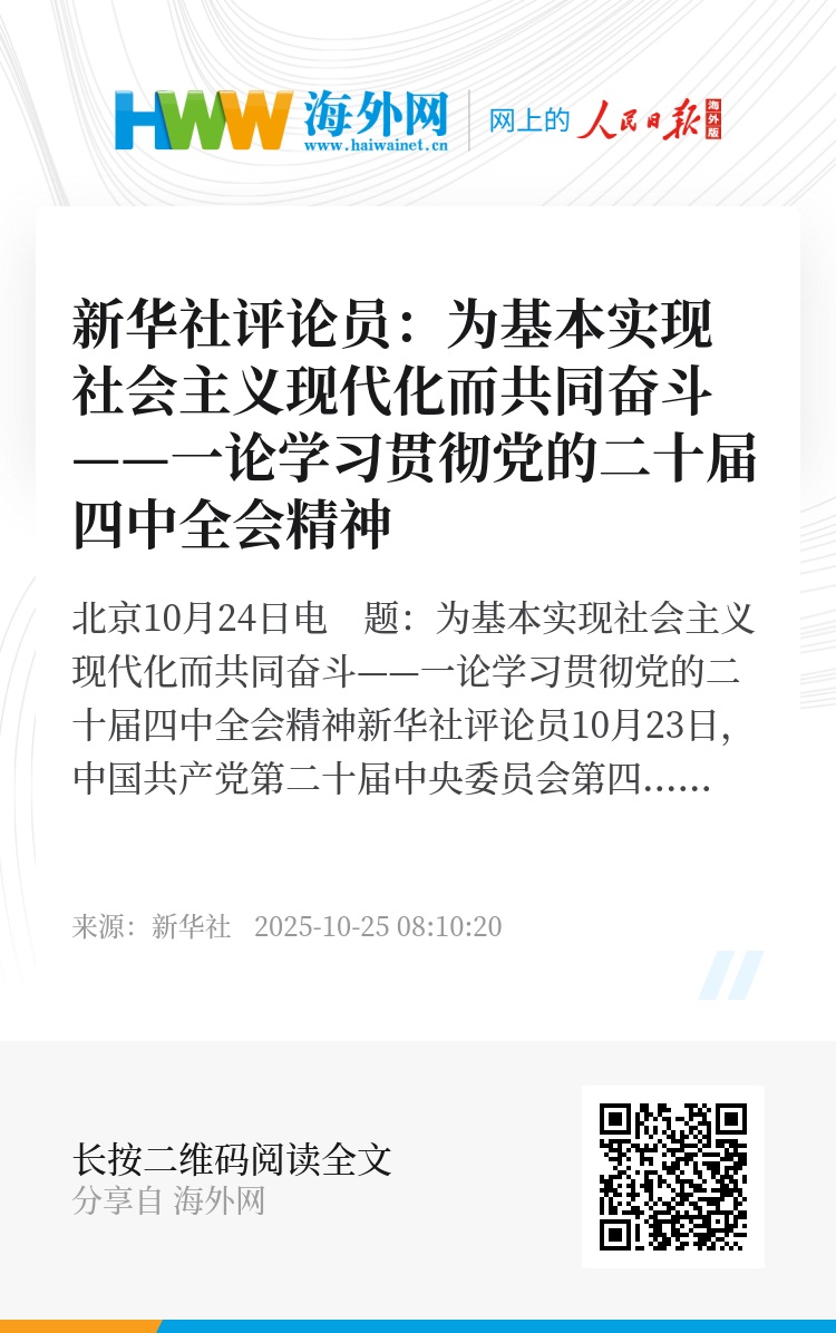 新华社北京10月24日电 题:为基本实现社会主义现代化而共同奋斗——一论学习贯彻党的二十届四中全会精神
