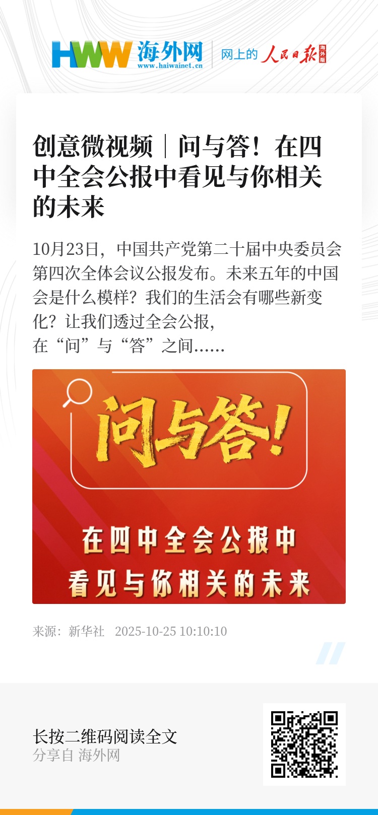 未来五年的中国会是什么模样?我们的生活会有哪些新变化?让我们透过全会公报,在“问”与“答”之间,看见与你我息息相关的未来。