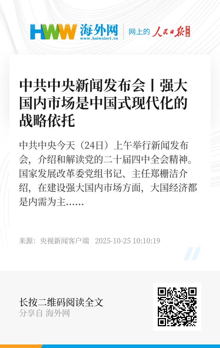 国家发展改革委党组书记、主任郑栅洁介绍,在建设强大国内市场方面,大国经济都是内需为主导,市场是当今世界最稀缺的资源,强大国内市场是中国式现代化的战略依托。《中共中央关于制定国民经济和社会发展第十五个五年规划的建议》提出坚持扩大内需这个战略基点,部署3方面重点任务,要把握好“拓展增量、提升效益、畅通循环”这三个关键。