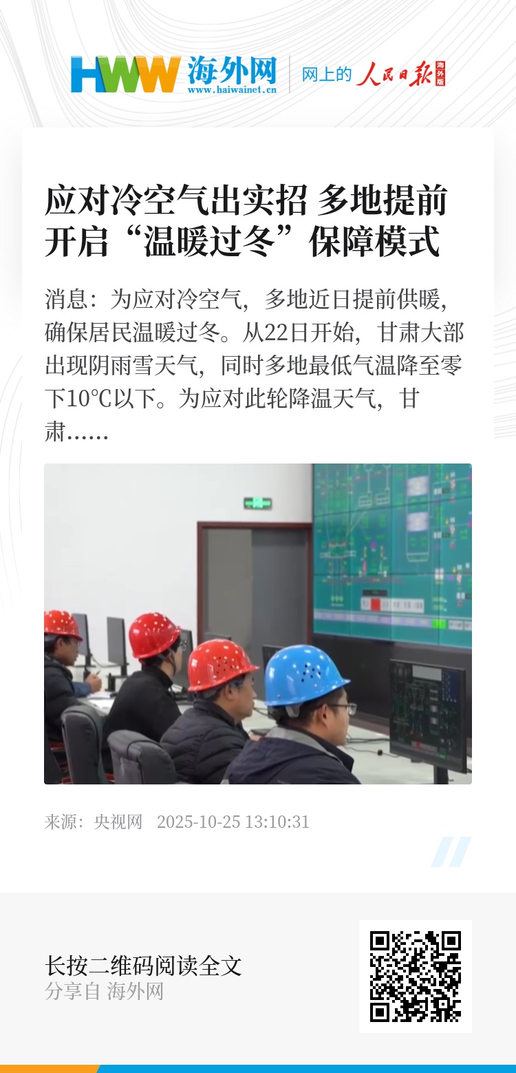 央视网消息:为应对冷空气,多地近日提前供暖,确保居民温暖过冬。