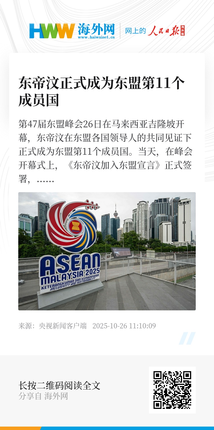 第47届东盟峰会26日在马来西亚吉隆坡开幕,东帝汶在东盟各国领导人的共同见证下正式成为东盟第11个成员国。