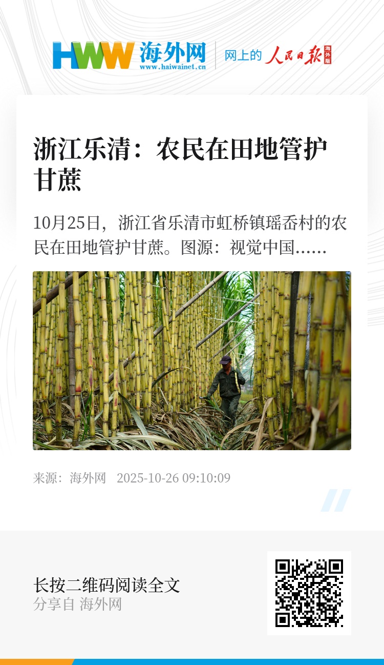 32903676,.浙江乐清:农民在田地管护甘蔗,.2025-10-26 09:56:09,.204309,.陈亚楠、卢思宇