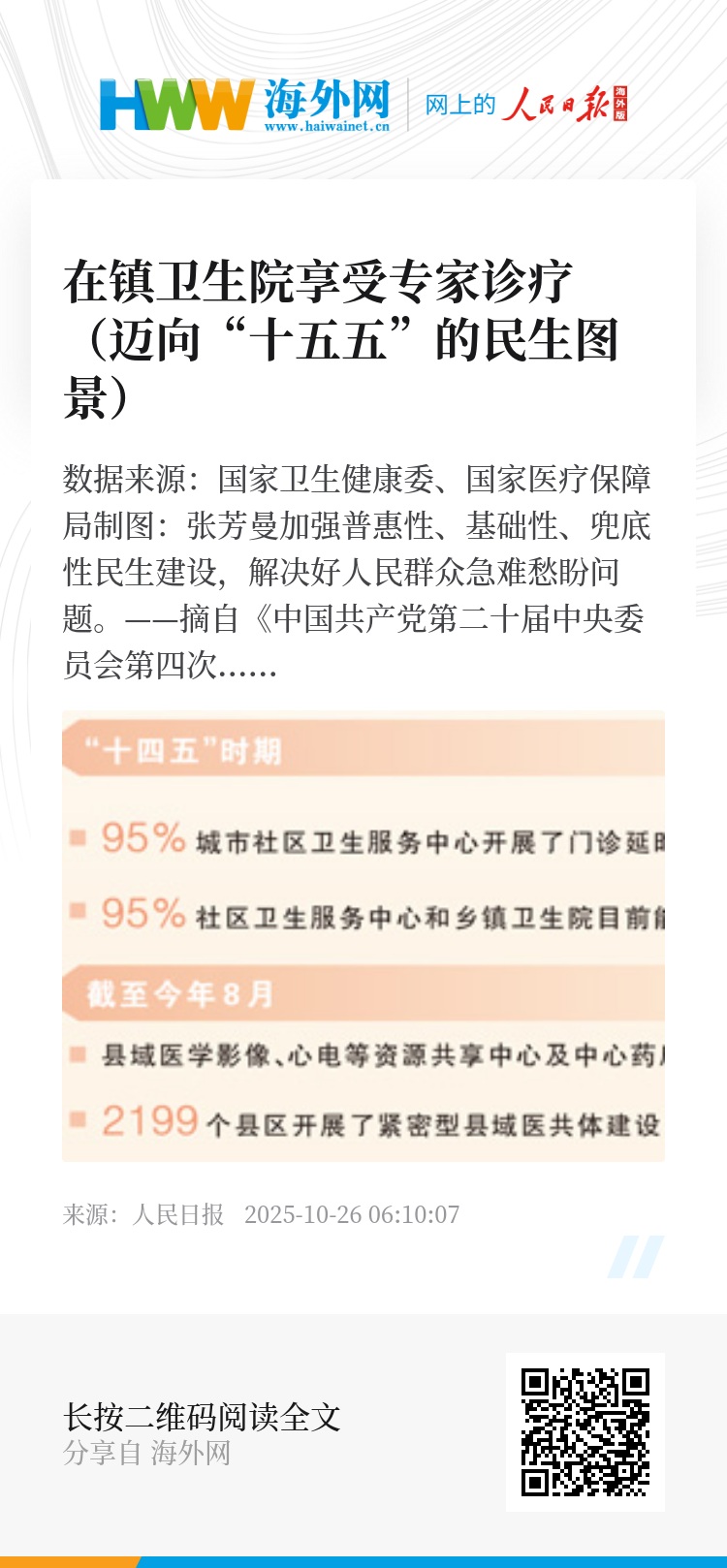 当涂县卫生健康委的数据显示,截至目前,医共体牵头医院为乡镇卫生院提供远程影像诊断和临床检验人次大幅提升。展望“十五五”,当涂县卫生健康委主任汪郁芳介绍,下一步将推动医共体建设向纵深发展,帮助乡镇卫生院建设1—2个特色科室,培养2—3名业务骨干,力争推动更多县级专家常驻乡镇,县域内就诊率提升至90%,让优质医疗服务在基层扎得更深、覆盖更广。