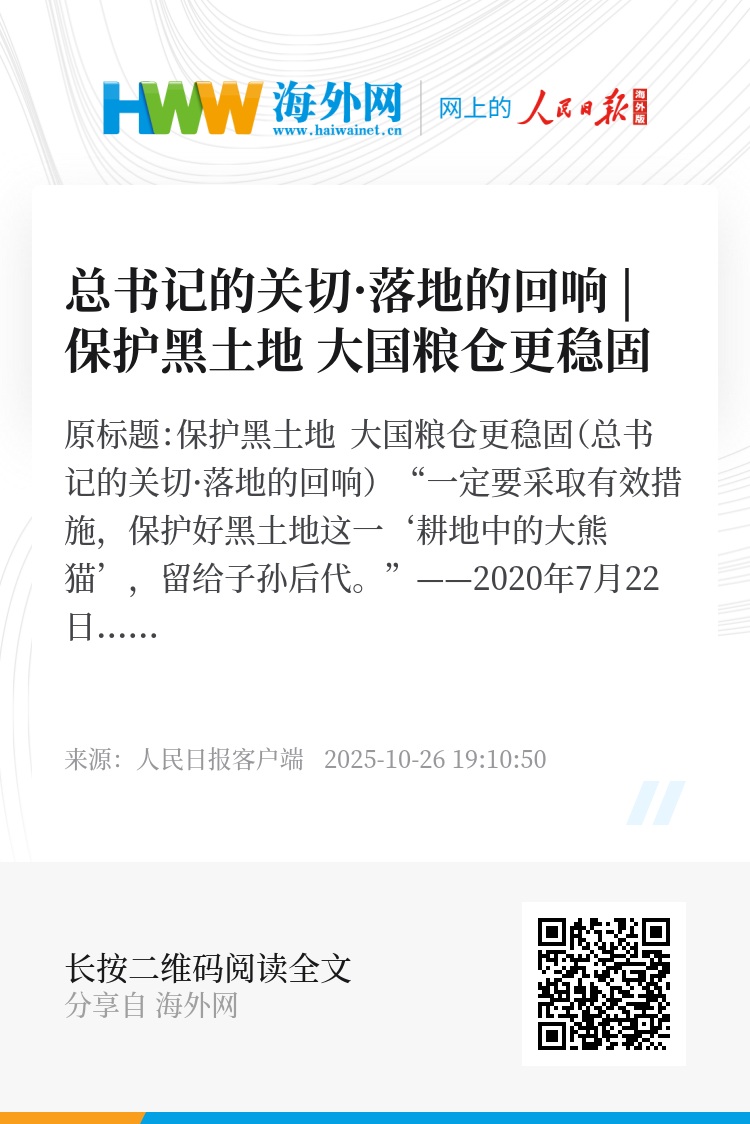 “这个工作很重要!”习近平总书记2020年7月在吉林考察时强调,“东北是世界三大黑土区之一,是‘黄金玉米带’、‘大豆之乡’,黑土高产丰产同时也面临着土地肥力透支的问题。一定要采取有效措施,保护好黑土地这一‘耕地中的大熊猫’,留给子孙后代。”