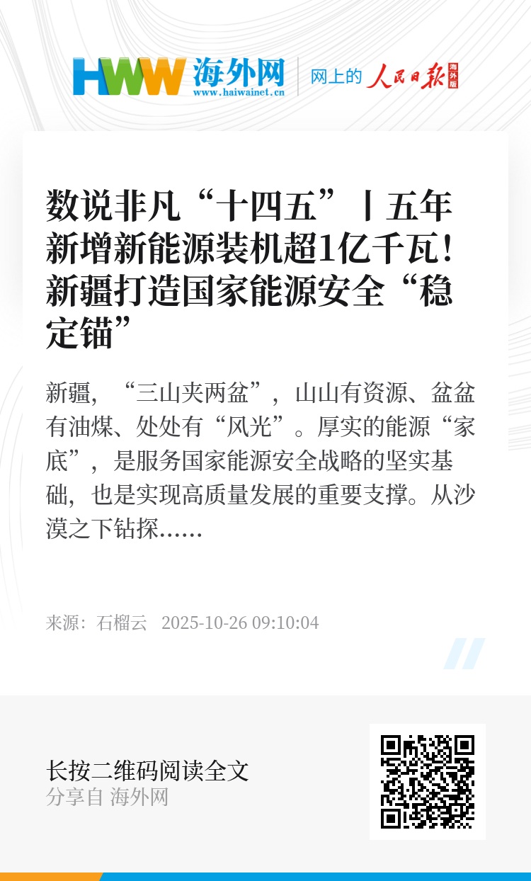 从沙漠之下钻探深井,到戈壁滩上铺开蓝色光伏“海洋”;从纵横蜿蜒的能源动脉,到跨越千里的特高压银线——新疆,正把脚下的“能源宝藏”转化为实实在在的发展动能。