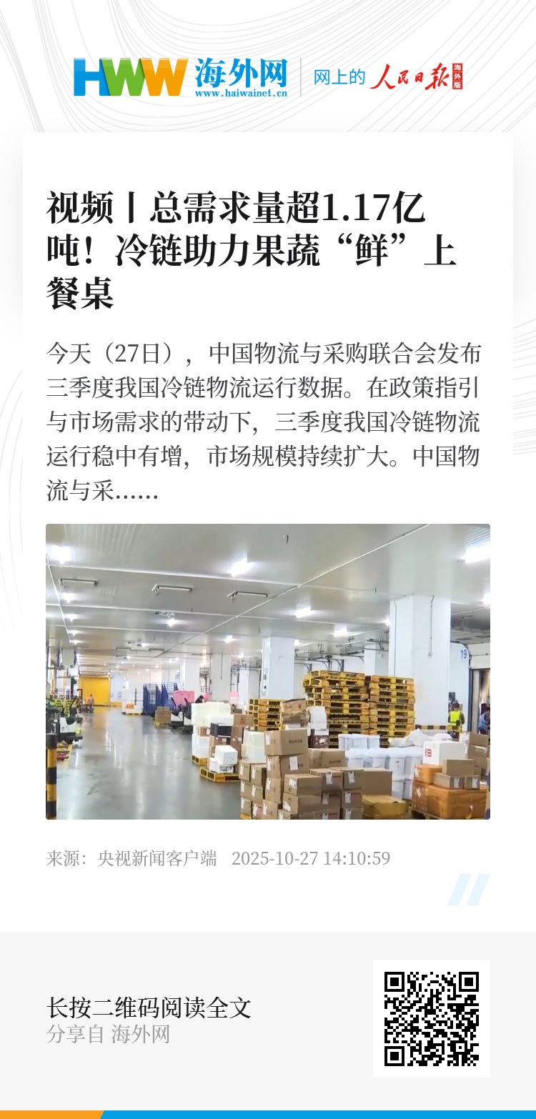 今天(27日),中国物流与采购联合会发布三季度我国冷链物流运行数据。在政策指引与市场需求的带动下,三季度我国冷链物流运行稳中有增,市场规模持续扩大。