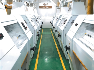 公司下属的面粉厂厂长艾散江·卡哈尔带记者走进生产车间,详细介绍面粉低温、低压、低速加工工艺。从麦粒清洗,到将其打碎、磨细,自动化运转程度很高。中间十几台机器不停运作,每台机器内是研磨程度不一的颗粒,加工后的面粉进入巨大的冷却塔中静置装袋。