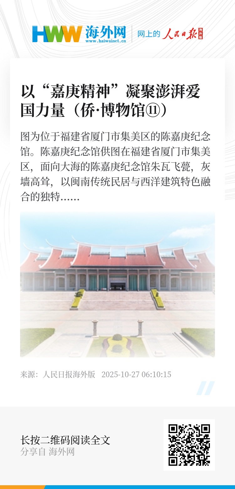“以前我只是听老师讲陈嘉庚先生的故事,这次能亲自把这些故事讲给更多人听,才真正明白‘诚毅’二字的重量。”参加陈嘉庚纪念馆暑期“诚毅少年”志愿服务的青少年志愿者这样感慨。在2025年暑期,48名“诚毅少年”志愿者完成1034场讲解活动。由陈嘉庚纪念馆和厦门大学嘉庚学院联合举办的“五育”成长系列公开课,将陈嘉庚的故事讲给更多大学生听。举办5届的大学生嘉庚主题文化创意比赛,吸纳更多大学生的创新创意,帮助陈嘉庚纪念馆开发文创产品……陈嘉庚纪念馆的年轻朋友正在因“嘉庚精神”继续汇聚。