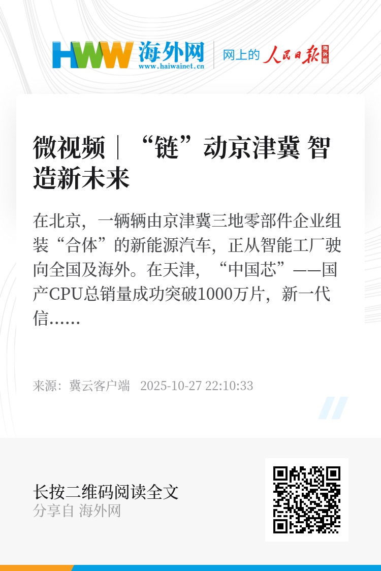 2025年,京津冀协同发展迈入新十年开篇。三地专精特新中小企业数量首破2万家,共打通“六链”37个“堵点”,京津冀先进制造业集群联盟成立……京津冀“六链五群”产业协同格局正加快构建。