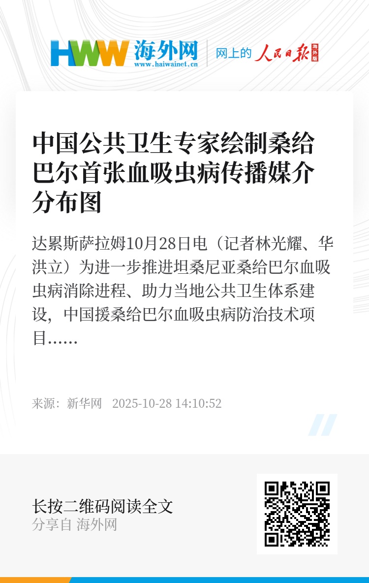 桑给巴尔卫生部相关负责人表示,这是桑给巴尔历史上首次系统获取全国螺类分布信息,标志着血吸虫病防控工作迈出了关键一步。中国专家组通过科学严谨的调查和数据分析,帮助桑吉巴尔建立了螺情监测技术体系,为实现消除血吸虫病的公共卫生目标提供了强有力的技术支撑。