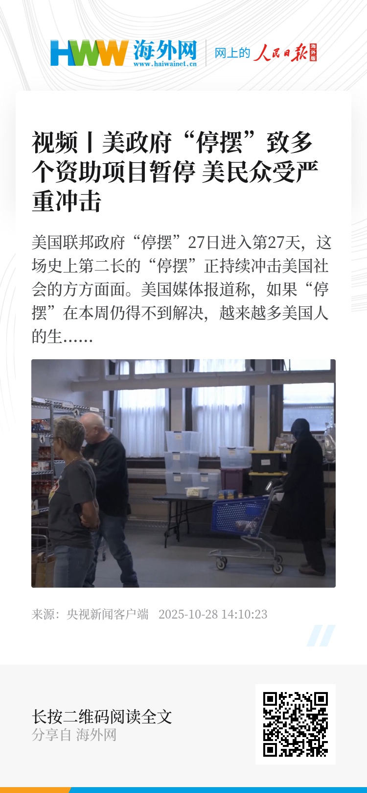 据美国《政治报》网站报道,受美国联邦政府持续“停摆”影响,美农业部宣布暂停其“补充营养援助计划”、也就是俗称的食品券项目,11月1日停止发放食品救济。目前这一项目覆盖约4200万人,约占美国总人口八分之一,其中多数为低收入群体和残障人士。食品券项目暂停后,他们的生活将难以为继。