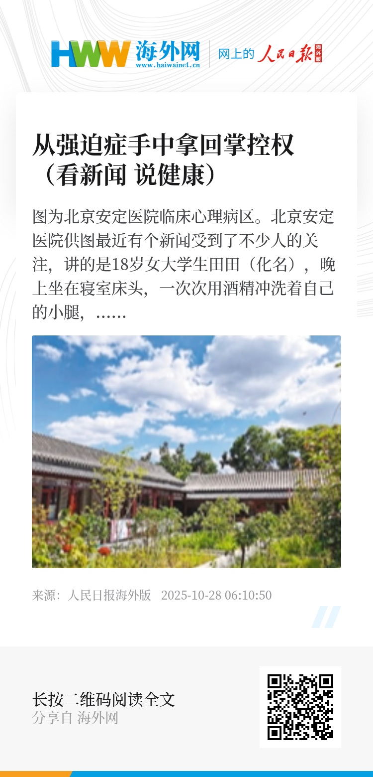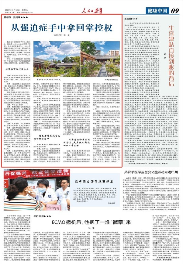 刘竞:强迫症是以强迫思维和(或)强迫行为为典型特征的精神障碍,会严重影响人们的日常工作、生活和人际关系。
