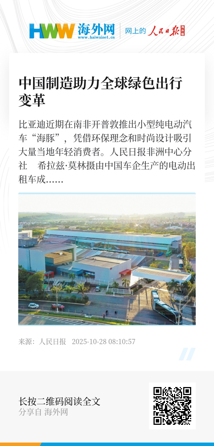 为全球提供可负担的优质绿色产品,为全球能源效率提升提供技术助力,通过本地化生产和运营与各国实现合作共赢,驶向世界的中国制造,正在融入各国交通体系绿色转型的生动实践。