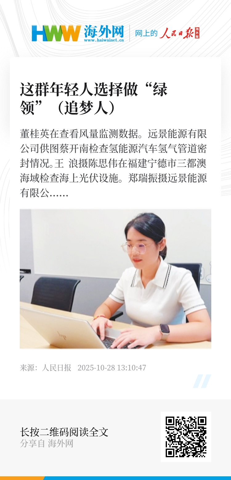 “把风资源评估做得更精细,让预测结果与风电场实际运行情况更相符,是我在工作中不懈追求的目标。”从业以来,董桂英参与评估的风电项目已超百个,多个项目的装机容量超百万千瓦。“点亮万家灯火的绿色电能中,有我的一份力量,再辛苦也是值得的。”董桂英说。