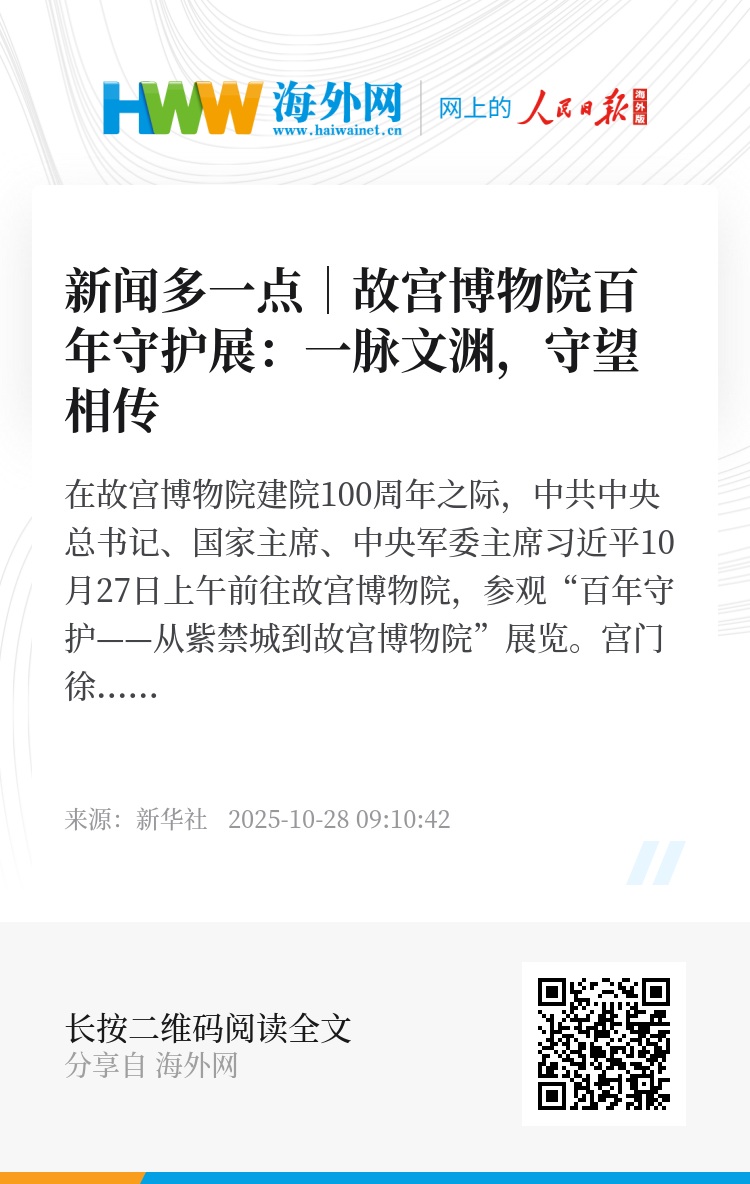 在故宫博物院建院100周年之际,中共中央总书记、国家主席、中央军委主席习近平10月27日上午前往故宫博物院,参观“百年守护——从紫禁城到故宫博物院”展览。