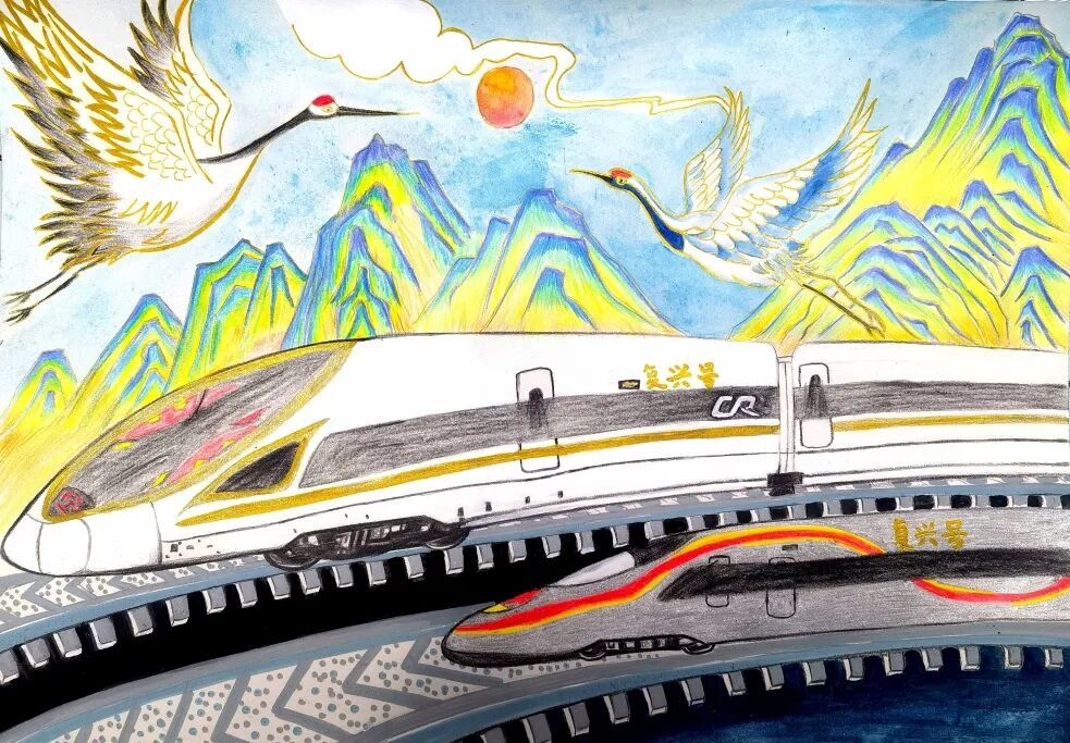 在火车上,我还把硬币立在窗台上做了小测试,掐表看它多久才会倒下,不过我打了好几个呵欠都没等到……我还喜欢列车广播的播报: “前方进入隧道。”随后车厢内外倏忽就暗下来,我心里就开始了奇幻的想象。邻座的男孩子也喜欢高铁穿隧道的感觉,我俩就把隧道命名为“时空小黑洞”。我们一起趴在车窗上,数着一路上要经过多少个这样的“黑洞”,很有趣。