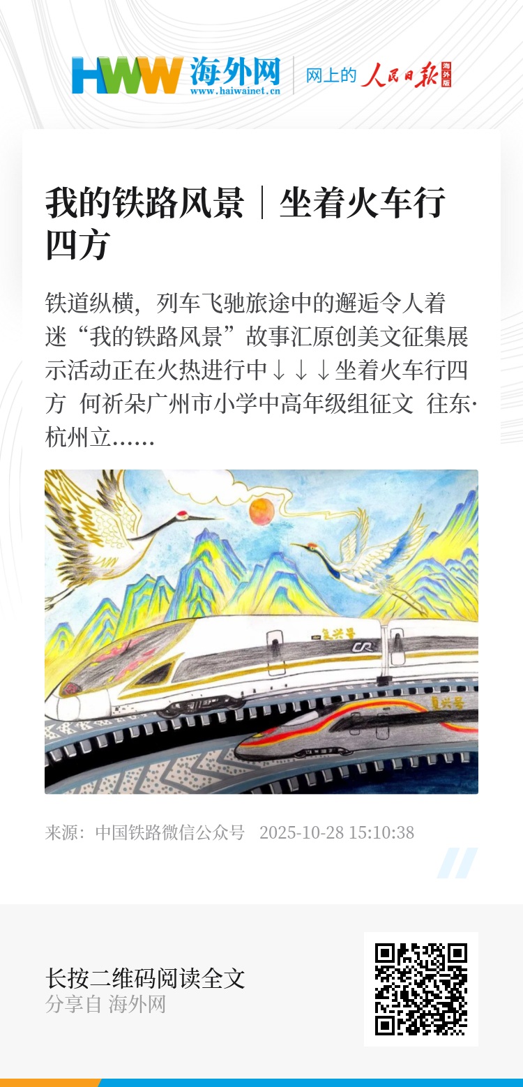 “摇啊摇,摇到外婆桥,外婆请我吃年糕……”复兴号的车身像一条银龙滑进杭州东站时, 我忍不住唱起外婆教我的这段歌谣,“妈妈,我都没有啥感觉列车就到站了,高铁好稳呀!”