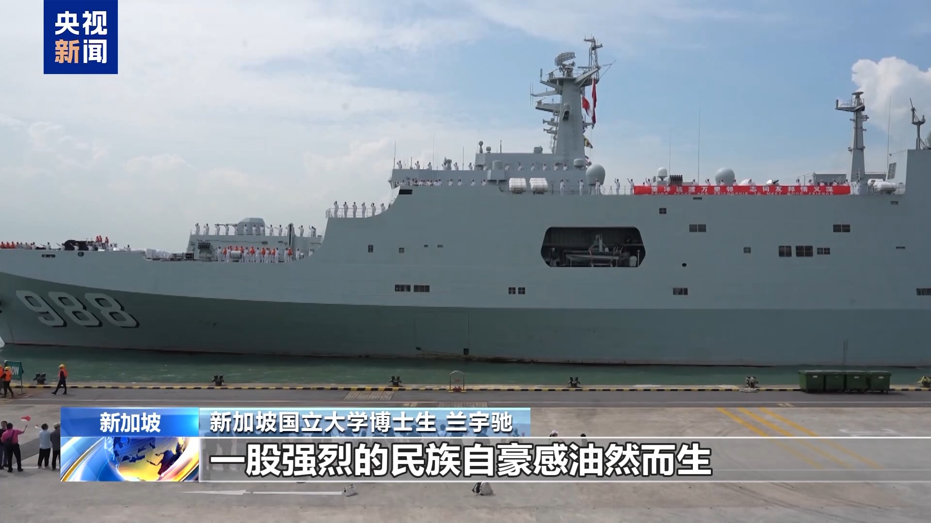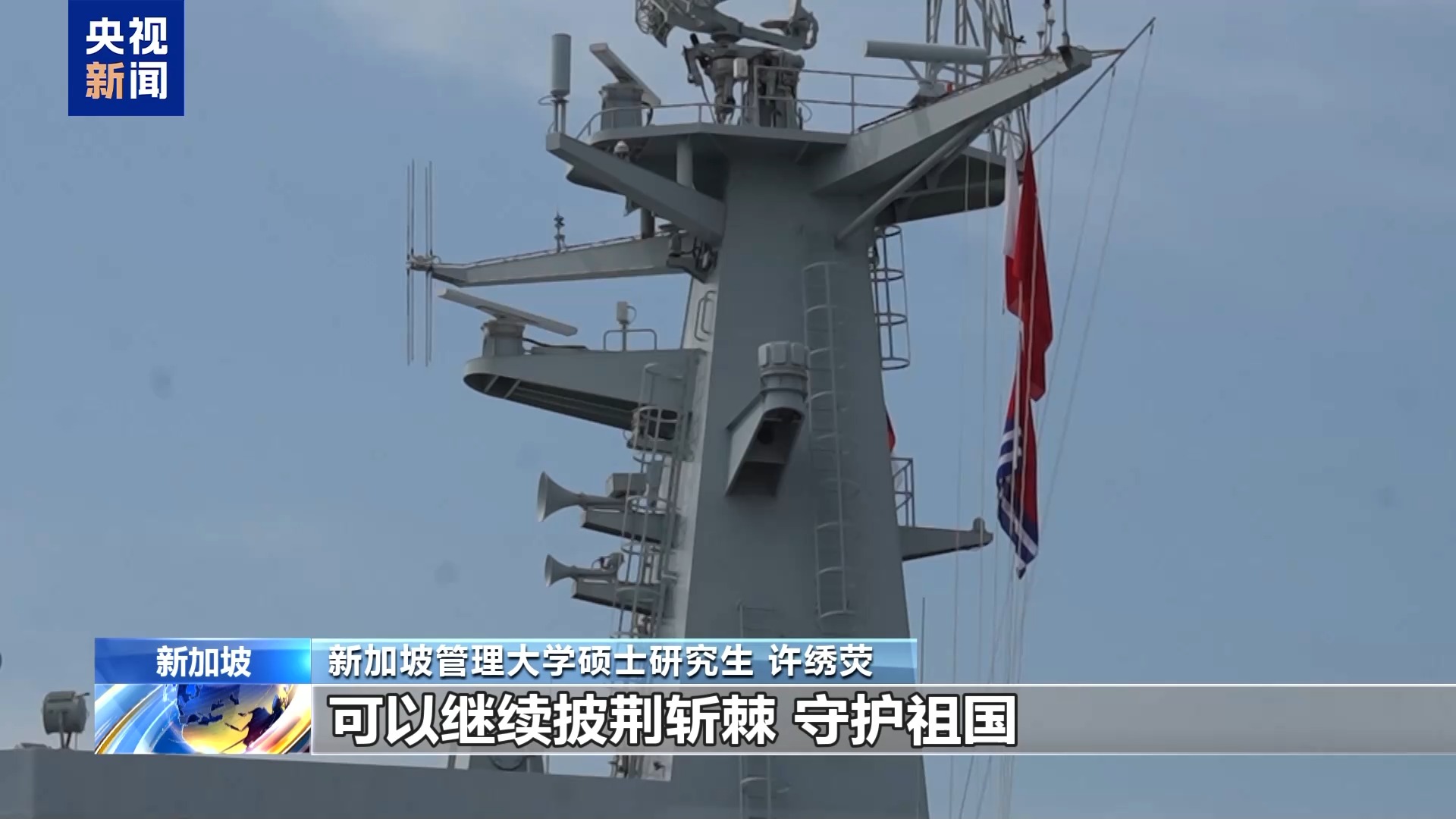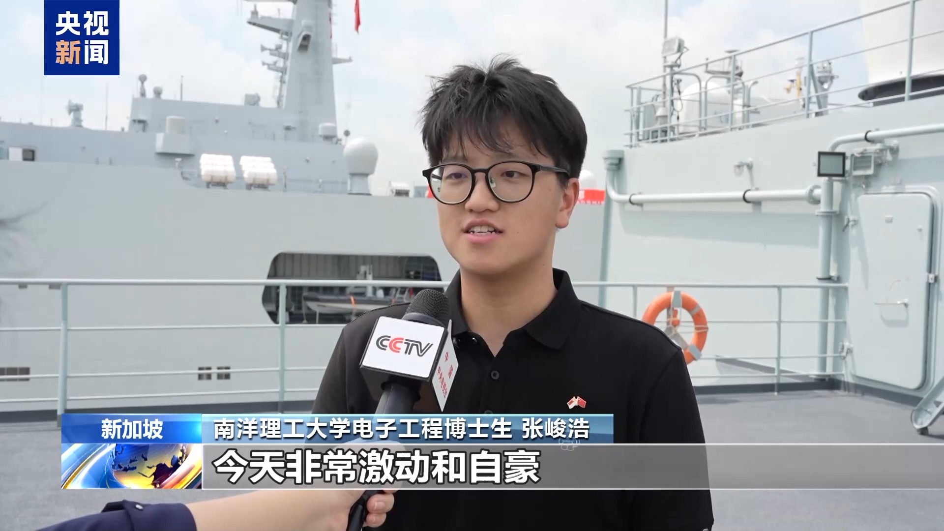 南洋理工大学电子工程博士生 张峻浩:今天非常激动和自豪,登上了我们海军戚继光舰。作为海外游子,在异国他乡的码头,看到了以民族英雄命名的戚继光舰,也倍感自豪和一种民族的认同感。
