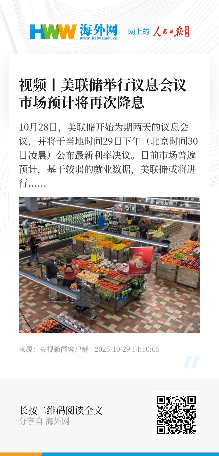 10月28日,美联储开始为期两天的议息会议,并将于当地时间29日下午(北京时间30日凌晨)公布最新利率决议。目前市场普遍预计,基于较弱的就业数据,美联储或将进行今年内的第二次降息。