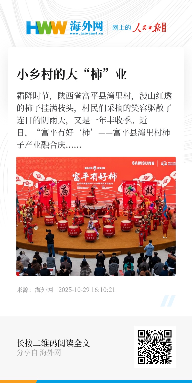 在中国三星的助力下,湾里村将一颗颗柿子转化为富民产业、文化载体和生态名片。从未来工厂的智能化生产线,到非遗工坊的柿染技艺重现;从返乡青年的创业激情,到“柿业伙伴”的和合共生——湾里村的乡村振兴路越走越宽敞。(文:于洋)