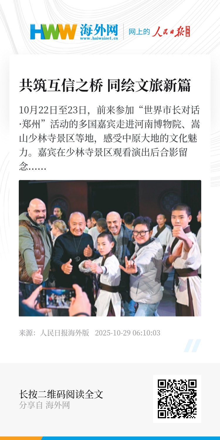 作为全球交流合作的重要平台,“世界市长对话”旨在增进国际互信、深化互学互鉴、加强全球合作。在郑州,中外嘉宾紧扣“赓续古都文脉 赋能城市更新”主题,围绕文旅融合、城市更新、城市治理等议题,开展探讨交流。