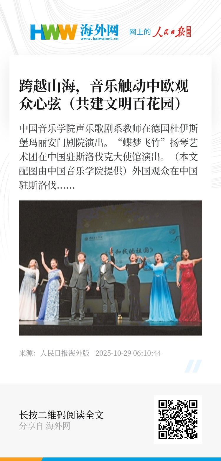 “本次赴欧交流,以音乐为媒介,展现了中欧文化交流的深厚基础。”中国音乐学院声乐歌剧系主任吴碧霞表示。(徐铭 牛靖雯 徐嘉伟 徐帆对本文亦有贡献)