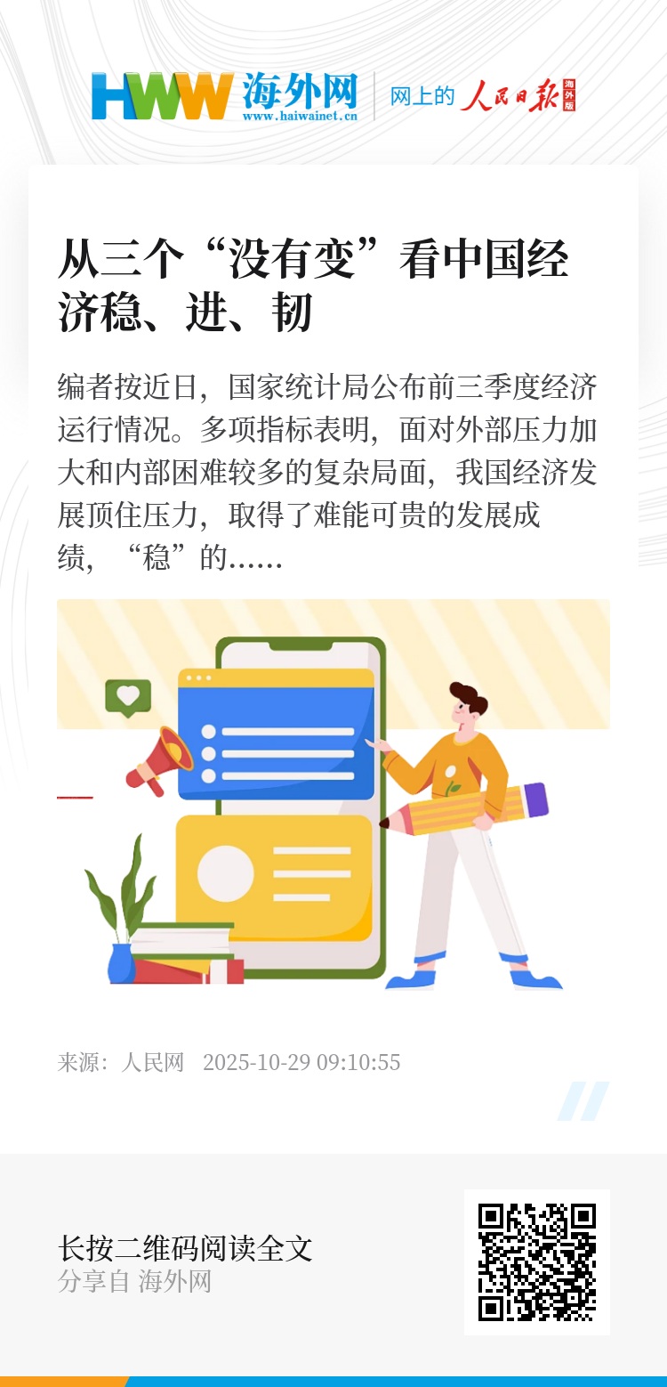 近日,国家统计局公布前三季度经济运行情况。多项指标表明,面对外部压力加大和内部困难较多的复杂局面,我国经济发展顶住压力,取得了难能可贵的发展成绩,“稳”的格局、“进”的势头、“韧”的特性没有改变。