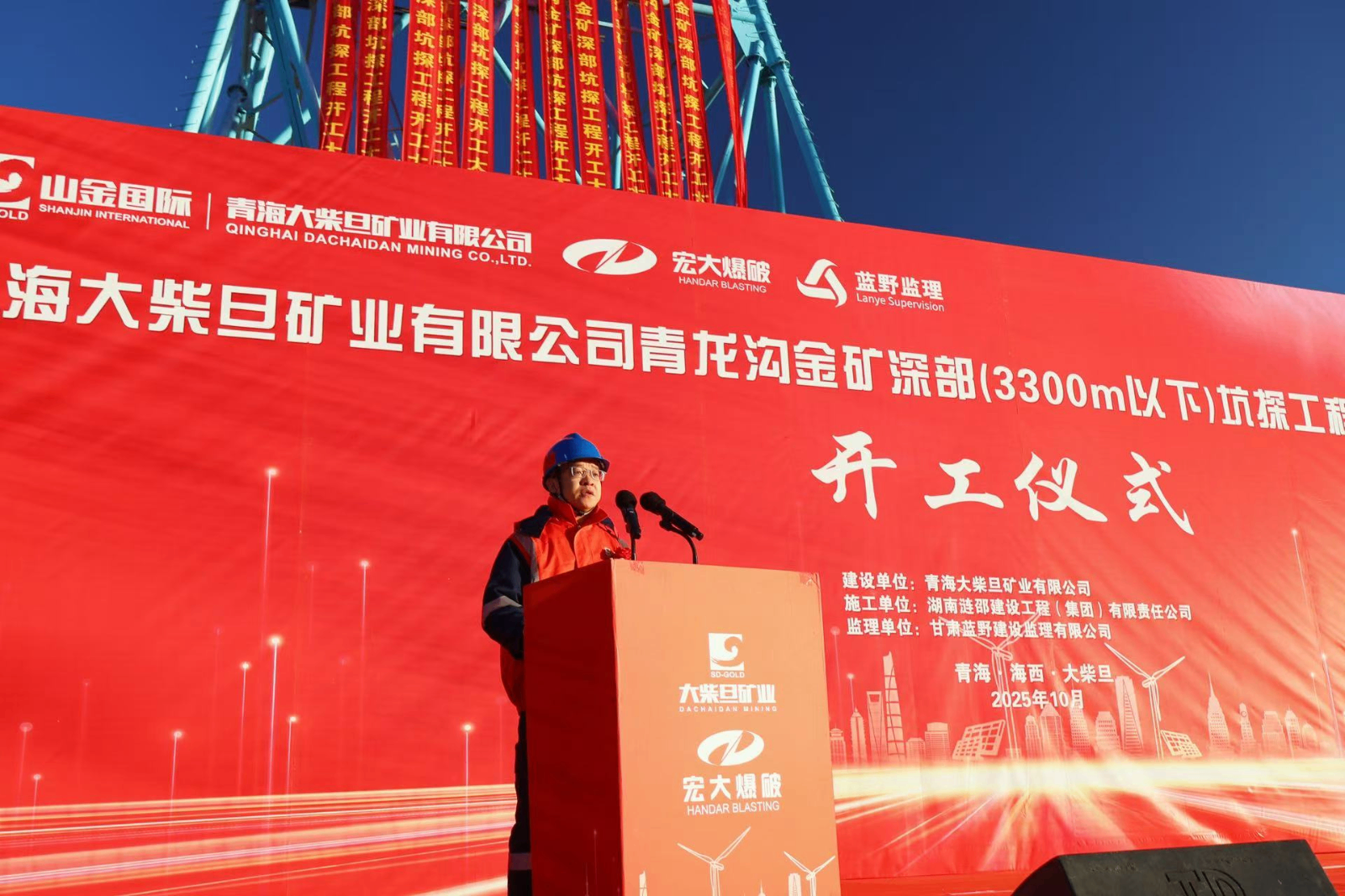 大柴旦矿业王敏杰在致辞中表示,项目团队将以高度的热情、过硬的作风和切实的行动,全力打好深部探矿攻坚战。他强调将重点做好三项工作:守牢安全红线、紧盯工程质量、优化全程服务,并承诺确保项目安全、优质、高效建成,助力山金国际发展与地方经济繁荣。